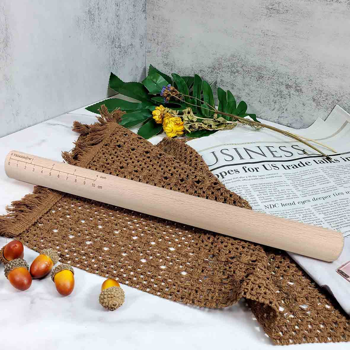 表面呈現自然木紋,質地密實,握感舒適,桿壓麵團順暢,操作靈活。