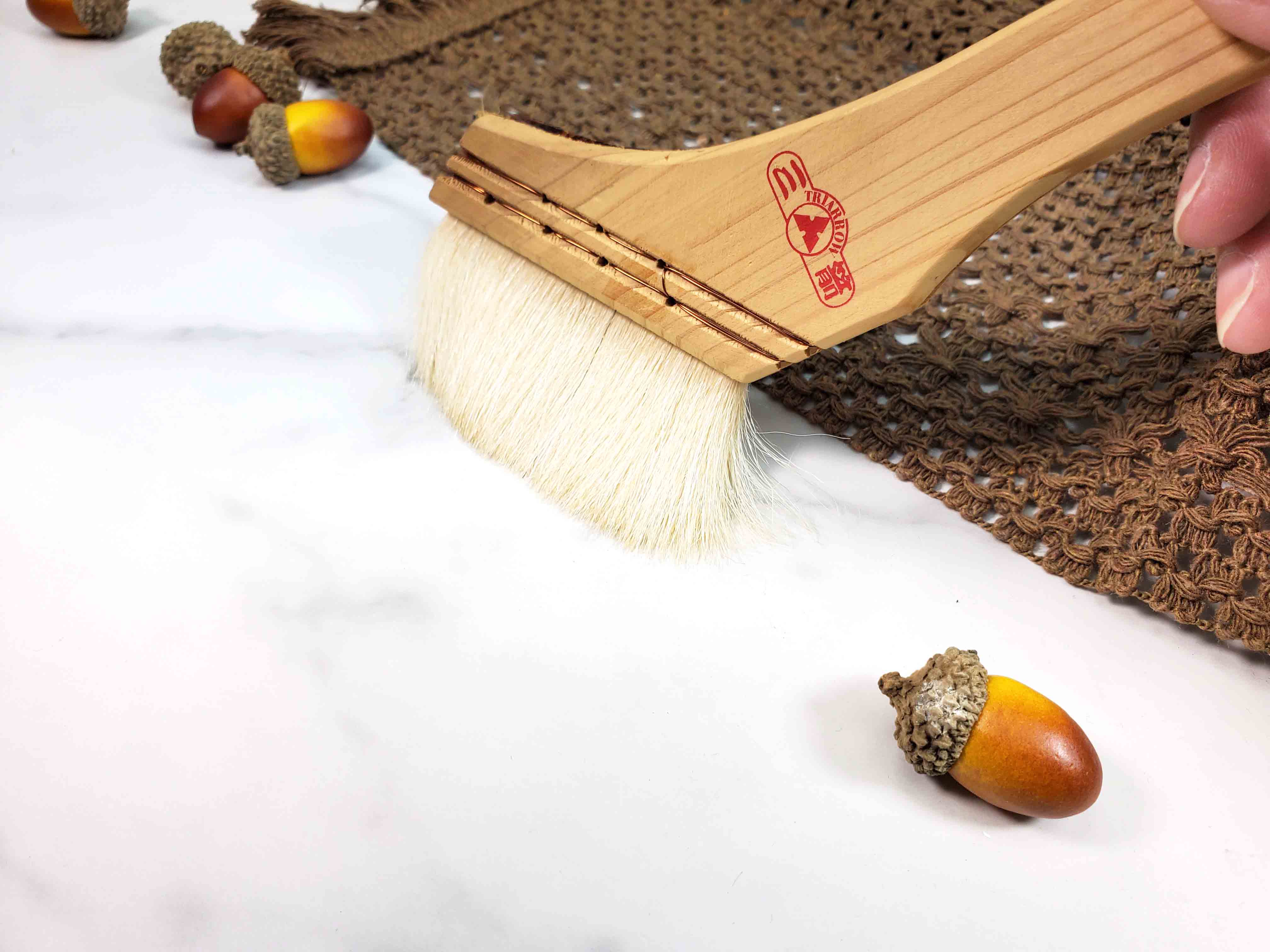 新品使用前先將刷毛浸水,再去除掉毛,避免使用中掉毛