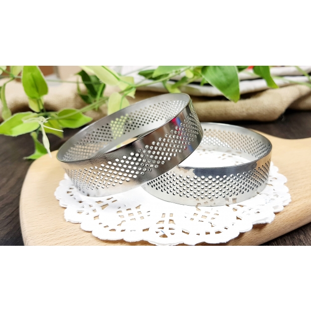 310707 7CM #304不鏽鋼洞洞塔圈 採用304不銹鋼製成,耐高溫、耐腐蝕、不易變形、可重複使用、不生鏽。 非常適合製作有塔皮的甜點。 蛋糕圈有透氣孔設計,透氣孔分佈均勻,透氣受熱均勻。 材質:#304不繡繡鋼+電解處理 規格:7cm x 2.2cm #304不鏽鋼電解處理耐用易保存 網洞設計,透氣及導熱效果更佳 脫模完整,快速定型塔皮不塌陷 邊緣鋒利,請小心使用及清洗,務必放置小孩不易取得之處 注意事項 使用完畢請清洗完全 可用小刷子將孔洞清潔完畢再放置陰涼處陰乾