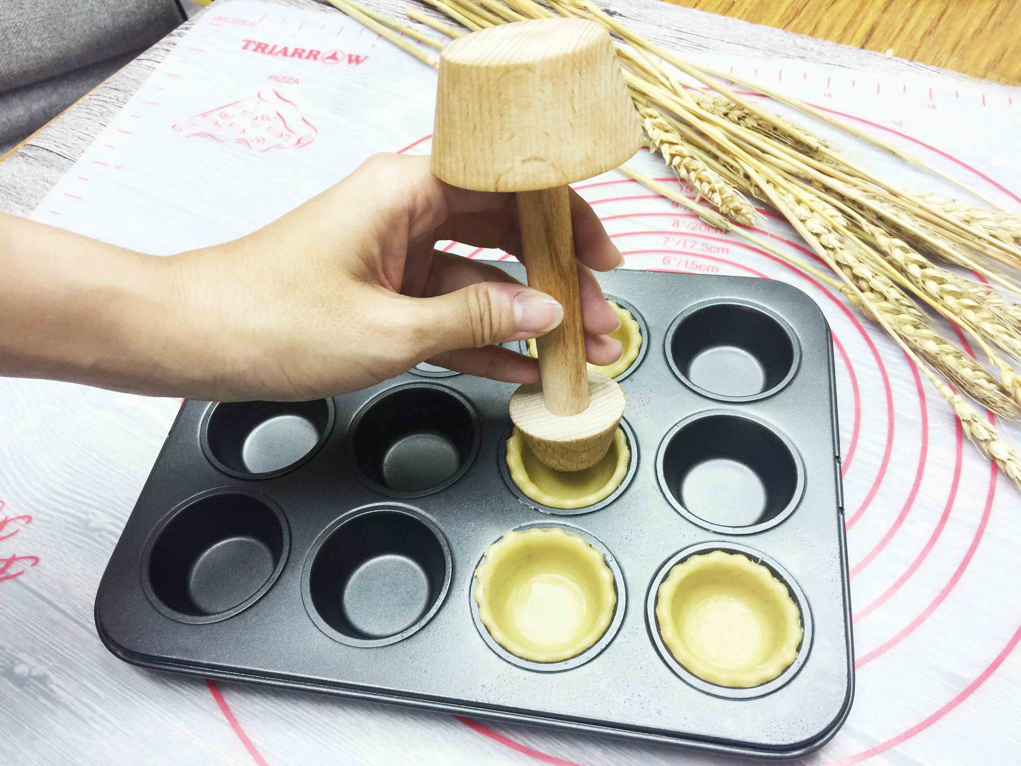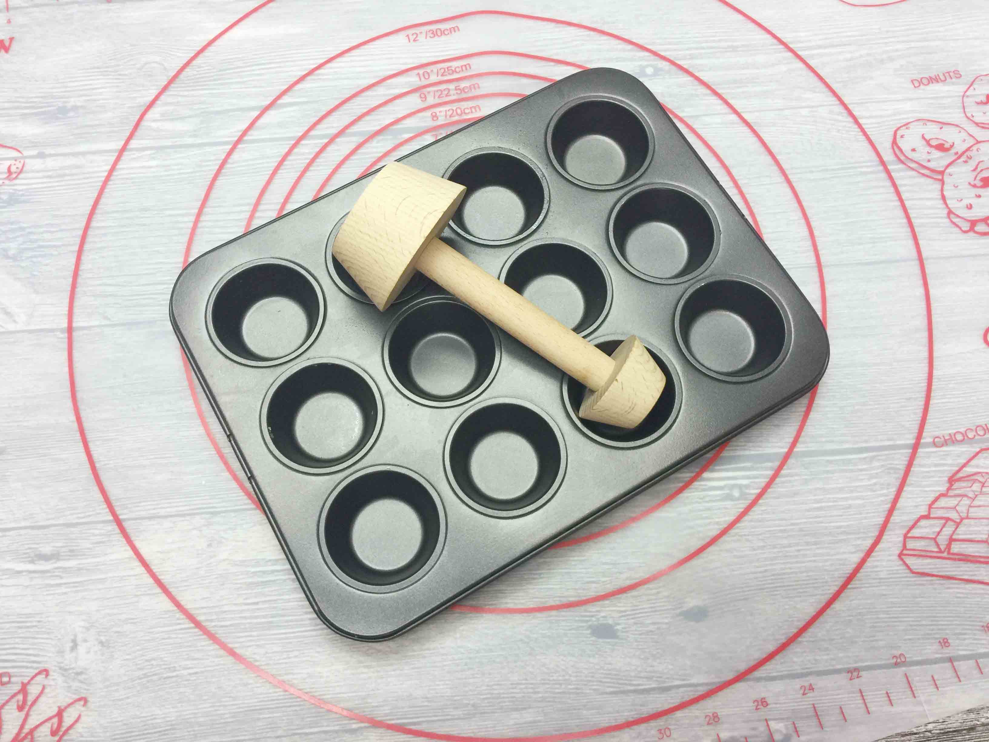 專為製作餡餅、蛋撻及水果塔設計,採用 嚴選櫸木材質,表面光滑堅固,雙頭大小設計,操作靈活方便。小頭適合迷你水果塔烤盤模,大頭適合一般杯子蛋糕模,讓您輕鬆將麵糰壓成完美杯型。