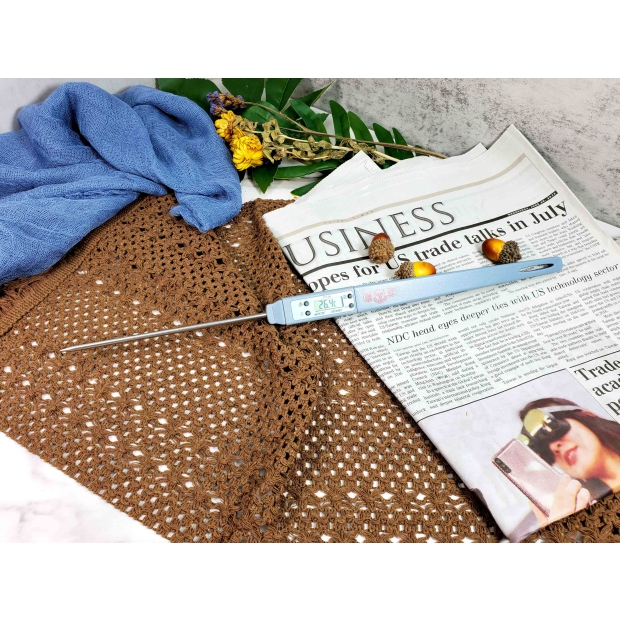 - 按"ON/OFF"鍵開啟/關閉開關,將金屬感溫棒放入欲測溫之物品中,即可於溫度計螢幕中顯示測量的溫度。