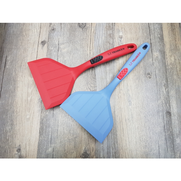 - 寬鏟頭設計,刮和翻炒食物更加輕鬆,鏟面較軟,不會刮傷光面塗層。